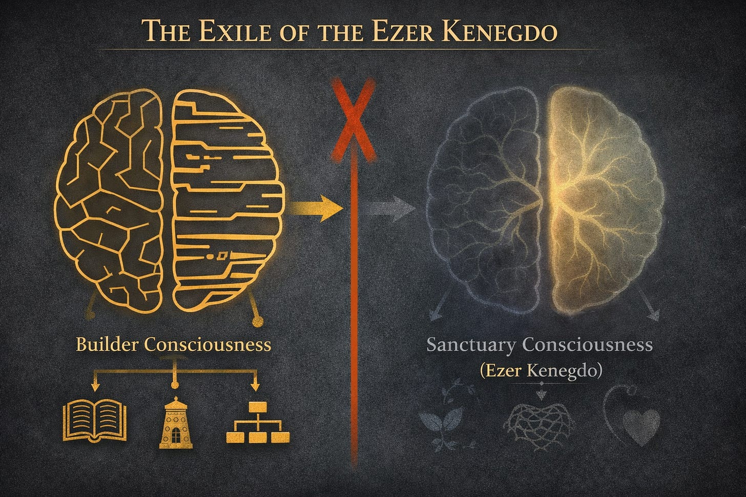 Healing begins where Genesis’s tragedy does: by recognizing that the Builder’s victory is also its fatal flaw. A civilization that exiles the ezer kenegdo—the relational, contextual, nurturing intelligence—is a civilization that can build towers but cannot make a home. It can optimize efficiency but cannot cultivate love. It can audit everything but understand nothing. It is a mind at war with half of itself.