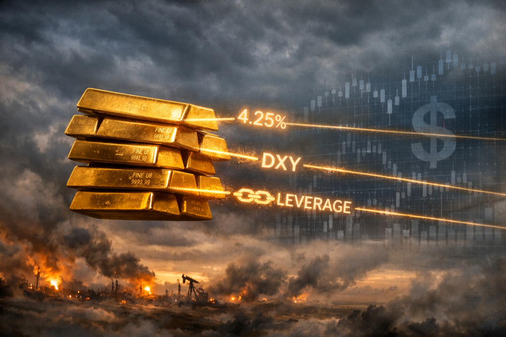 At 1% or 2%, gold wins easily. But at 4.25%, the “opportunity cost” of holding gold becomes painful. So money flows out of gold and into bonds. That’s one giant magnet pulling gold sideways.